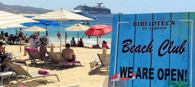 Boasting an incredible view of Cabo San Lucas Marina and swimmable Medano beach, Biblioteca De Tequila Beach Club is NOW open for lunch.