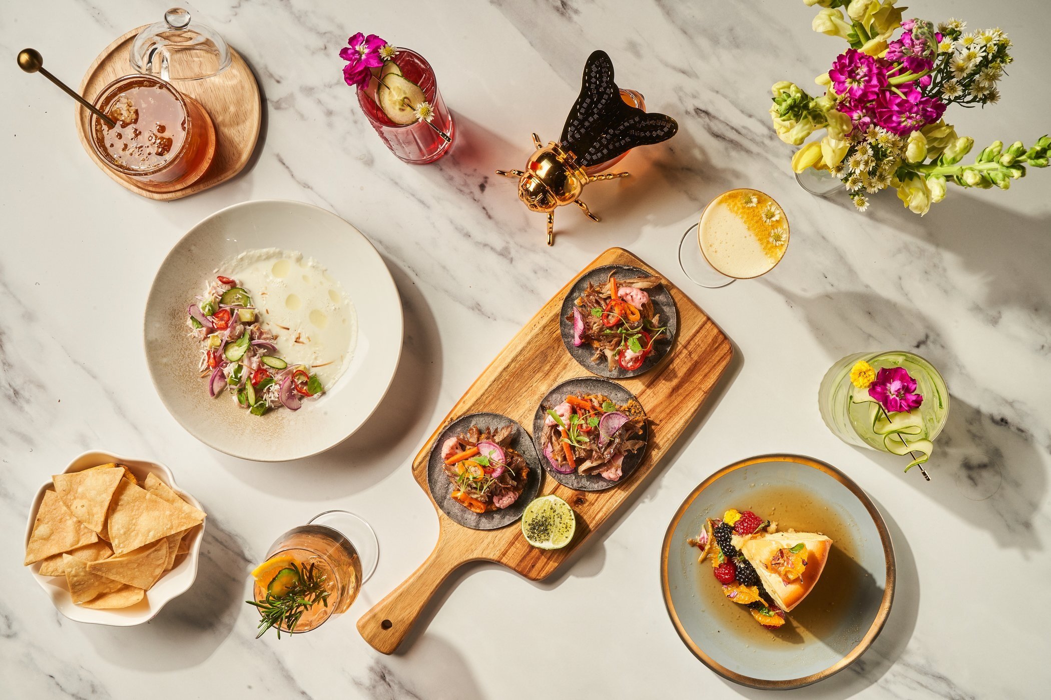 Our food system heavily depends on bees, and one in every three bites of food depends on bees for pollination. As a restaurant group focused on Latin cuisine, bees are important, as they are major pollinators of the agave plant and avocados. Since 2022, our guests have enjoyed bee-centric food & drink collections, while learning about the importance of education & awareness for the wellbeing of bees.